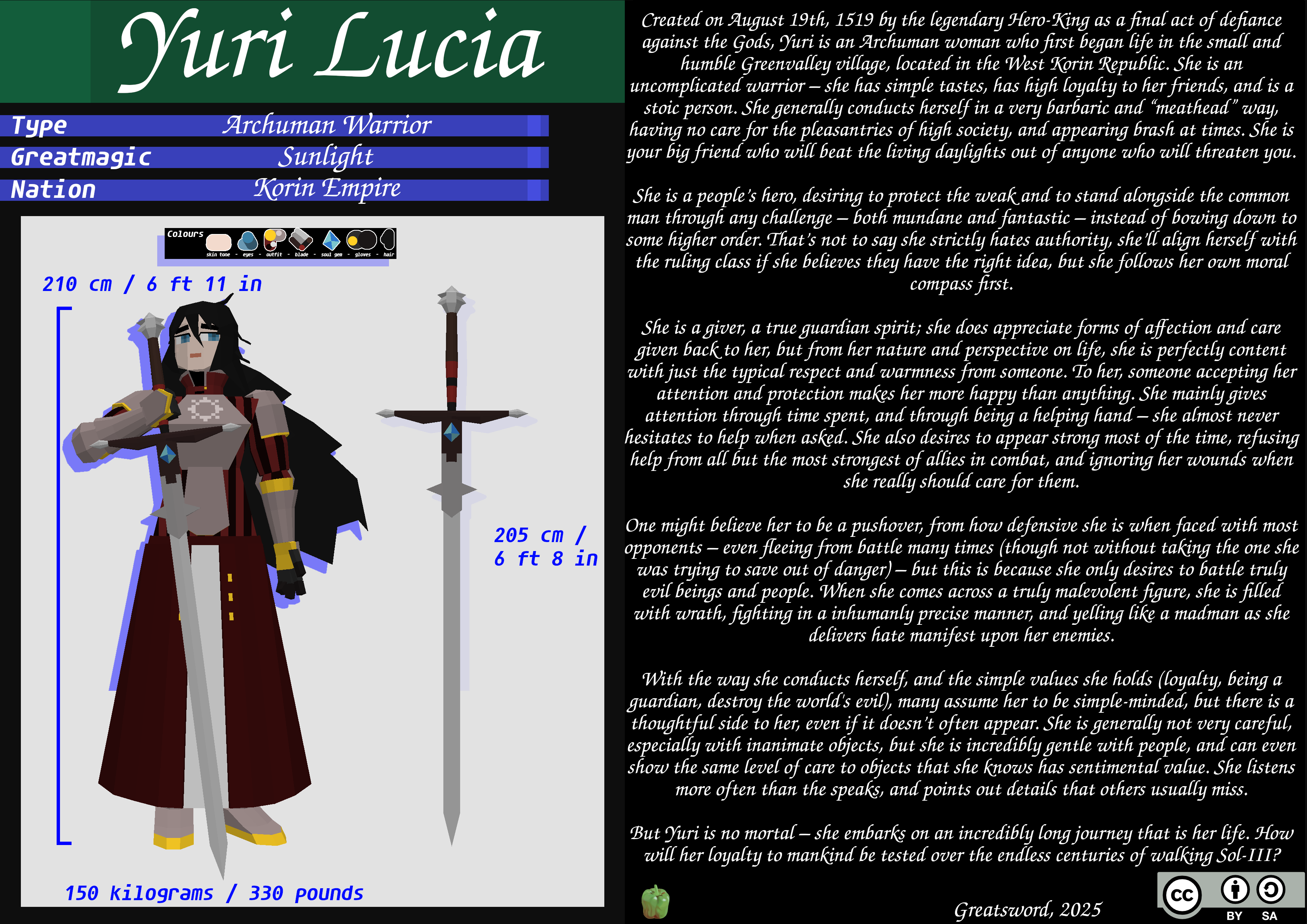 Thought it would be cool to make a character card for Yuri that contains a little blurb about her story. It's a little outdated, since it uses the older model, and the planet she's from is called Tercia now, not Sol-III